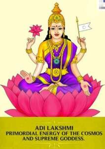 Adi Lakshmi is the primordial form of Goddess Lakshmi. She is the root cause of all existence and without her existence whole creation is inconceivable.