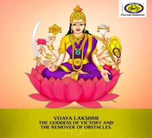 Vijaya means victory. This form of goddess is provider of victory, not only in battles but also in conquering hurdles in our daily life to beget success. She is also known as ‘Jaya’ Lakshmi, she is shown as having eight arms sitting on a lotus wearing a red sari, and carrying a a discus, a conch, a sword, a shield, a noose, and a lotus, other two hands being in abhaya and varada mudra.