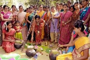 Makara Sankranti is regarded as important for spiritual practices and accordingly, people take a holy dip in riversKaveri, Krishna, Godavari. A shared cultural practice found amongst Hindus of various parts of India is making sticky, bound sweets particularly from sesame and a sugar base such as jaggery. This type of sweet is a symbolism for being together in peace and joyfulness, despite the uniqueness and differences between individuals.For most parts of South India, this period is a part of early stages of the Rabi crop and agricultural cycle, where crops have been sown and the hard work in the fields is mostly over. The time thus signifies a period of socializing and families enjoying each other’s company, taking care of the cattle, and celebrating around bonfires,