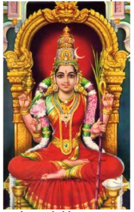 Goddess Kamakshi (‘The desirable one’) is defined as the Supreme Goddess of Beauty and Tranquility. She is an incarnation of Goddess Shakthi. As Lord Shiva’s Wife, she is known as Kamakshi in South India and Kamakhya in the East. She is a Goddess equal in stature to Lord Shiva.